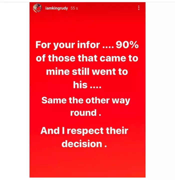 Rudeboy then went on to warn Davido that he has no right to abuse his guest and family. Rudeboy then went on to reveal that a lot of people who attended his birthday party later came to his and he therefore respect them for such decision.