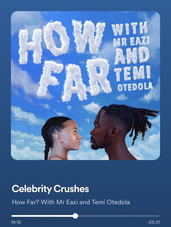 “Listening to @thehowfarpod makes me want to fall in love this year o. @TemiOtedola and @MrEazi, please stay together forever!,” she wrote on social media app, Twitter.