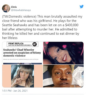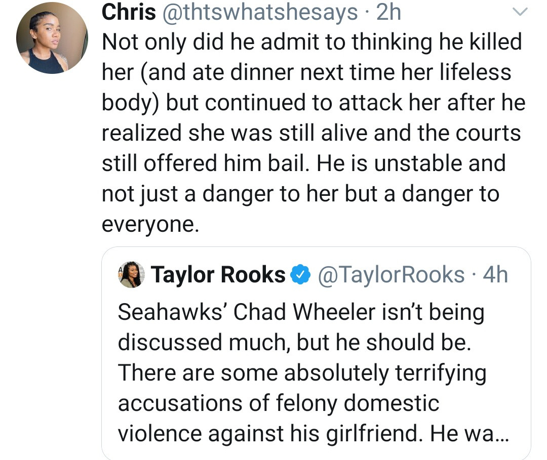 Seattle Seahawks player Chad Wheeler was arrested on suspicion of domestic violence after beating his girlfriend till she bled.