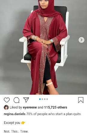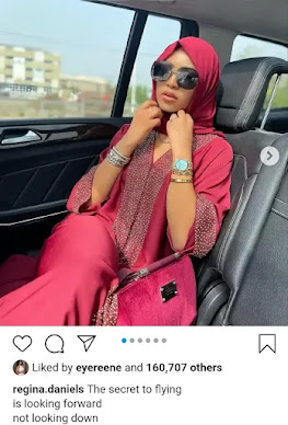 Regina Daniels, 20, is one actress that has continued to prove to all her fans that she really knows what it means to dress up for any occasion. She just did that again with this lovely outfit looking like a Muslim lady from a royal background.