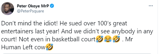 Peter Okoye and a human rights activist clash on Twitter over the reopening of the Lekki tollgate