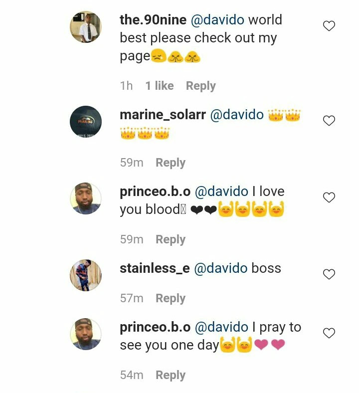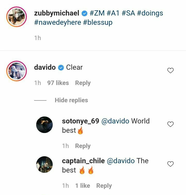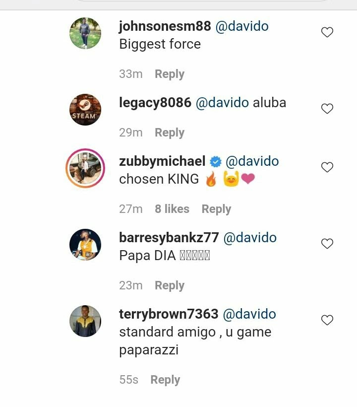 Mixed Reactions As Davido Passes Comment On Zubby Michaels’ Recent Post On Instagram
