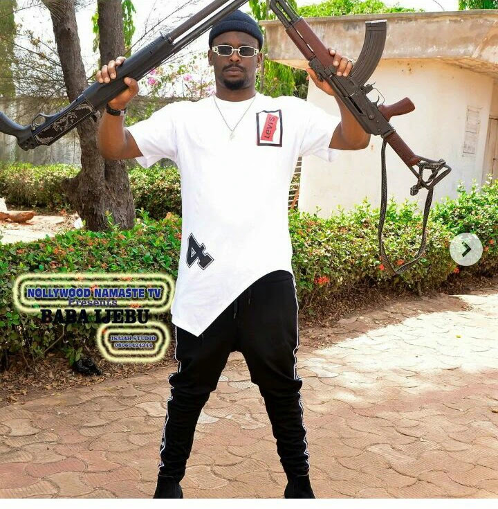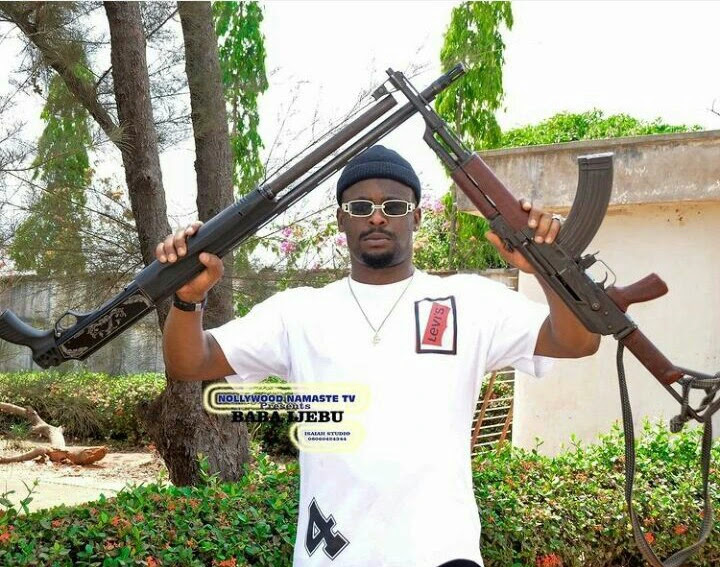 Just in, Zubby Michael took to his official Instagram account to share another photo in the movie ‘BABA IJEBU’ but this time he was seen holding two guns which got the attention of popular Nigerian singer and songwriter Davido to comment ‘clear’.
