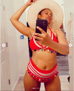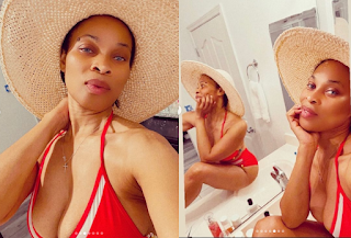 Nollywood star, Georgina Onuoha took to Instagram to share these photos of herself rocking a red sexy two-piece with a hat.
