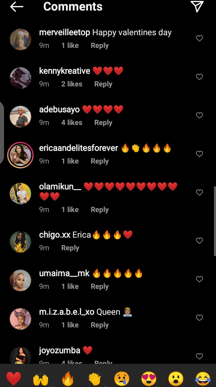 Today is Valentines day, and many people have been doing a lot of interesting stuffs. Right from those that are gifting their partners, to those sharing new pictures, and Erica wasn’t left out, as she shared some brand new pictures on Instagram.