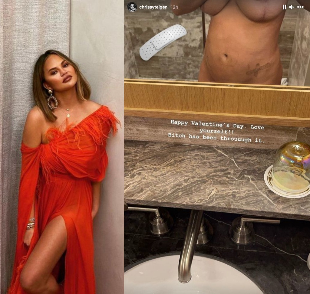 Chrissy Teigen, 35, stripped off to show the extent of her scarred body on her social media.