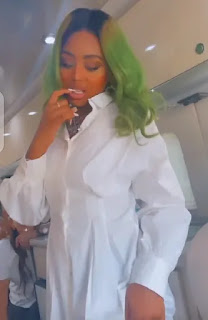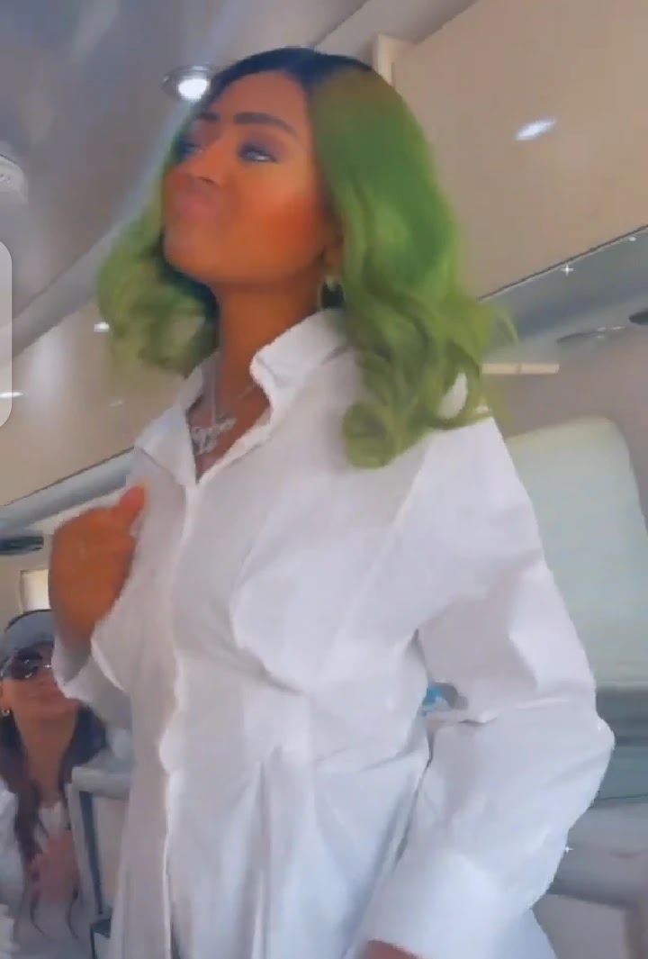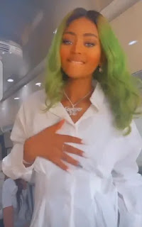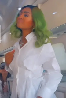 Yesterday she shared some videos and pictures on her instagram story. In the video, she dressed in a white outfit and put her long green hair on display. In the video, it seems like Regina was going out, as she was seen dancing inside a bus.