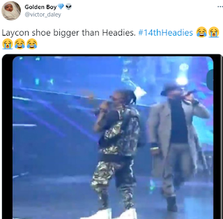 The footwear Laycon wore to the Headies is being dicussed on Twitter by viewers.