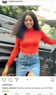 While sharing the photos, Regina Daniels gave her post a caption saying; “Dreams Can Be as Big as You Let Them Be”.