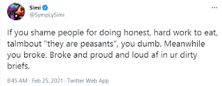 If you shame people for doing honest hard work to eat, you are dumb – Simi