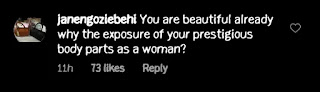 Erica gave her reply which was more like a savage. She told the fan that she wanted to share more of her beauty and that was why she was rather exposing it.