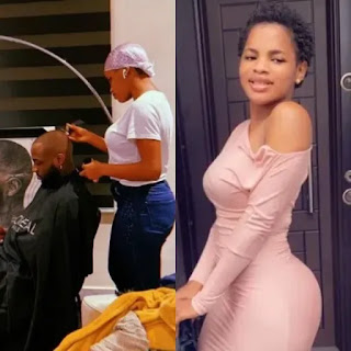 Well, most people think that the one behind Davido’s nice haircuts would be a guy, but it’s surprisingly a beautiful lady called Princess. Princess is a professional barber that specialises in giving nice haircuts to celebrities as she often goes to Davido’s house to give him the nicest haircut.