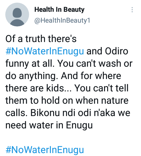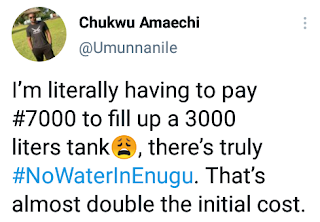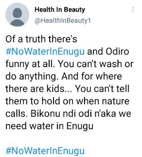 Meanwhile, the hashtag #NoWaterInEnugu is currently one of the trending topics on Twitter with residents lamenting their woes.
