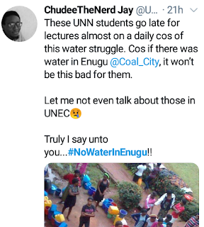 Enugu residents have taken to Twitter to lament after acute water scarcity hit the state capital and its environs.