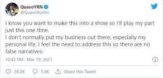 “I know you want to make this into a show so I’ll play my part just this one time. I don’t normally put my business out there, especially my personal life. I feel the need to address this so there are no false narratives,” he wrote.