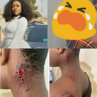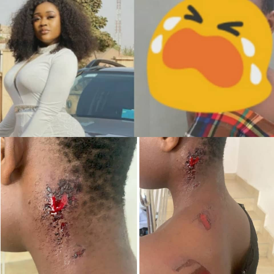 ”This happened this morning at Badore where we are currently filming., this house girl from Calabar was brutally beaten up by the man of the house because she refused to have sex with him…