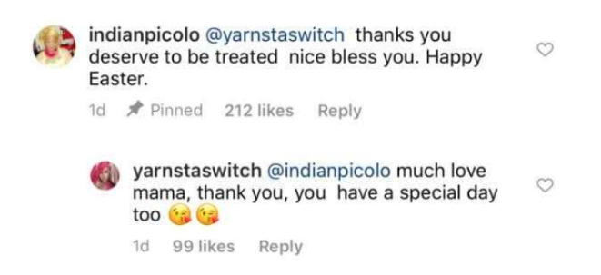 In her words, “Thanks, you deserve to be treated nice bless you. Happy Easter”.