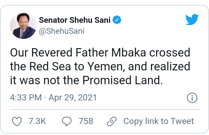 Meanwhile, a former Kaduna Central senator, Shehu Sani, reacted to the development. According to him, Mbaka realised it was not the promised land after he crossed the Red Sea to Yemen.