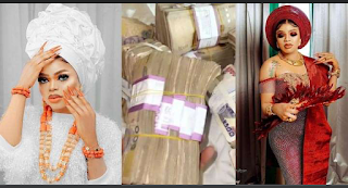 Nigerian crossdresser, Bobrisky has once again taken to social media to show off bundles of cash, howbeit, this time he ‘received’ it ahead of his grandeurs birthday party.