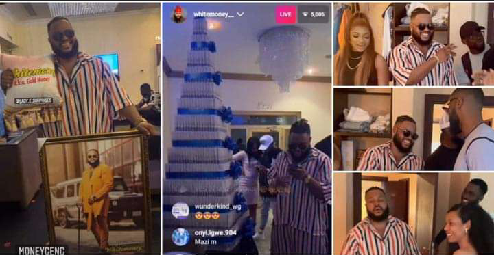 Whitemoney’s fans were also not left out in the show of love and he was presented with a sky-high money cake made of 13-tiers of crisp 500 naira notes.