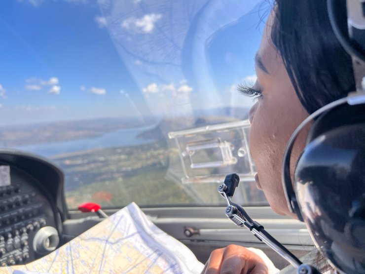 He shared photos that showed her getting on the plane and hitting the airspace together with him.