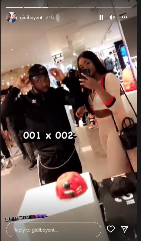 Gidiboy shared the video of the Assurance crooner and Chioma at a boutique and described them as “001 and 002”.