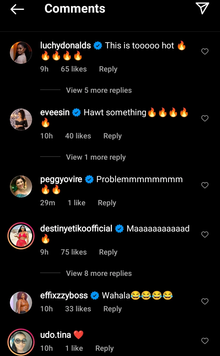Nollywood actresses, Luchy Donald, Eve Esin, fans, and well-wishers slipped into the comment section quickly after the post went viral on social media platforms, as expected, to provide some words of advice from a different perspective.