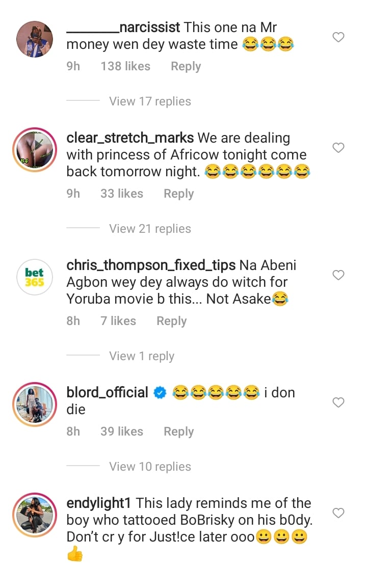 chris_thompson_fixed_tips wrote: “Na Abeni Agbon wey dey always do witch for Yoruba movie b this… Not Asake”