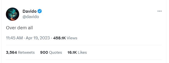 However, amid the rumours, Davido, who is yet to confirm or debunk the reports, simply wrote on Twitter, “Over them all”.
