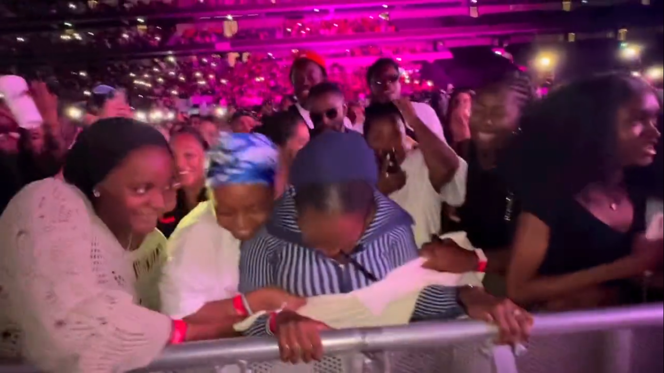 The ‘More Love, Less Ego‘ concert by Wizkid at the 60K capacity Tottenham Hotspur stadium captured a highlight involving drama among fans.