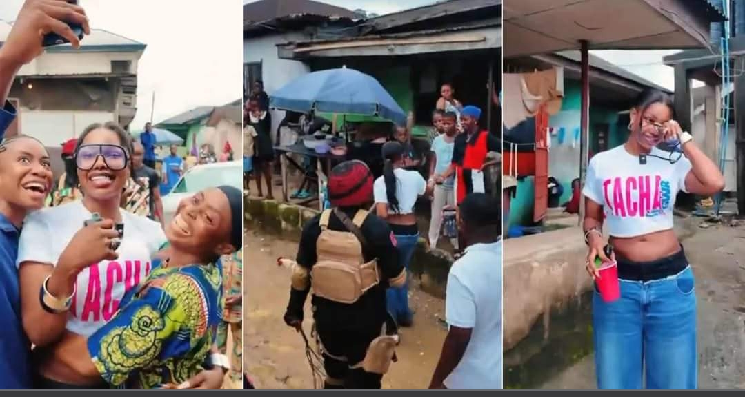 beautiful slay queen causes a stir as she flashes her b()()bs on camera while dancing